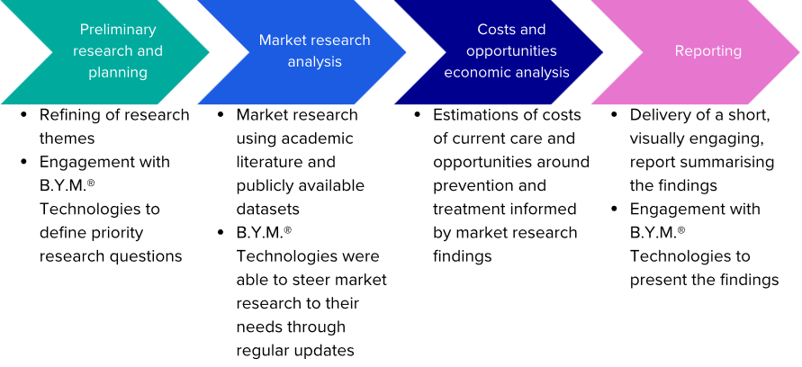 Unity Insights have extensive knowledge of publicly available datasets and navigating literature archives to identify suitable sources and to translate the research into costs and opportunities for patients, for the healthcare system and for the life science sector. This has provided B.Y.M.® Technologies with valuable insights to shape its UK go-to-market (GTM) strategy while also underscoring the need for further research in women’s health, enabling the company to share key findings with patients and partners.
